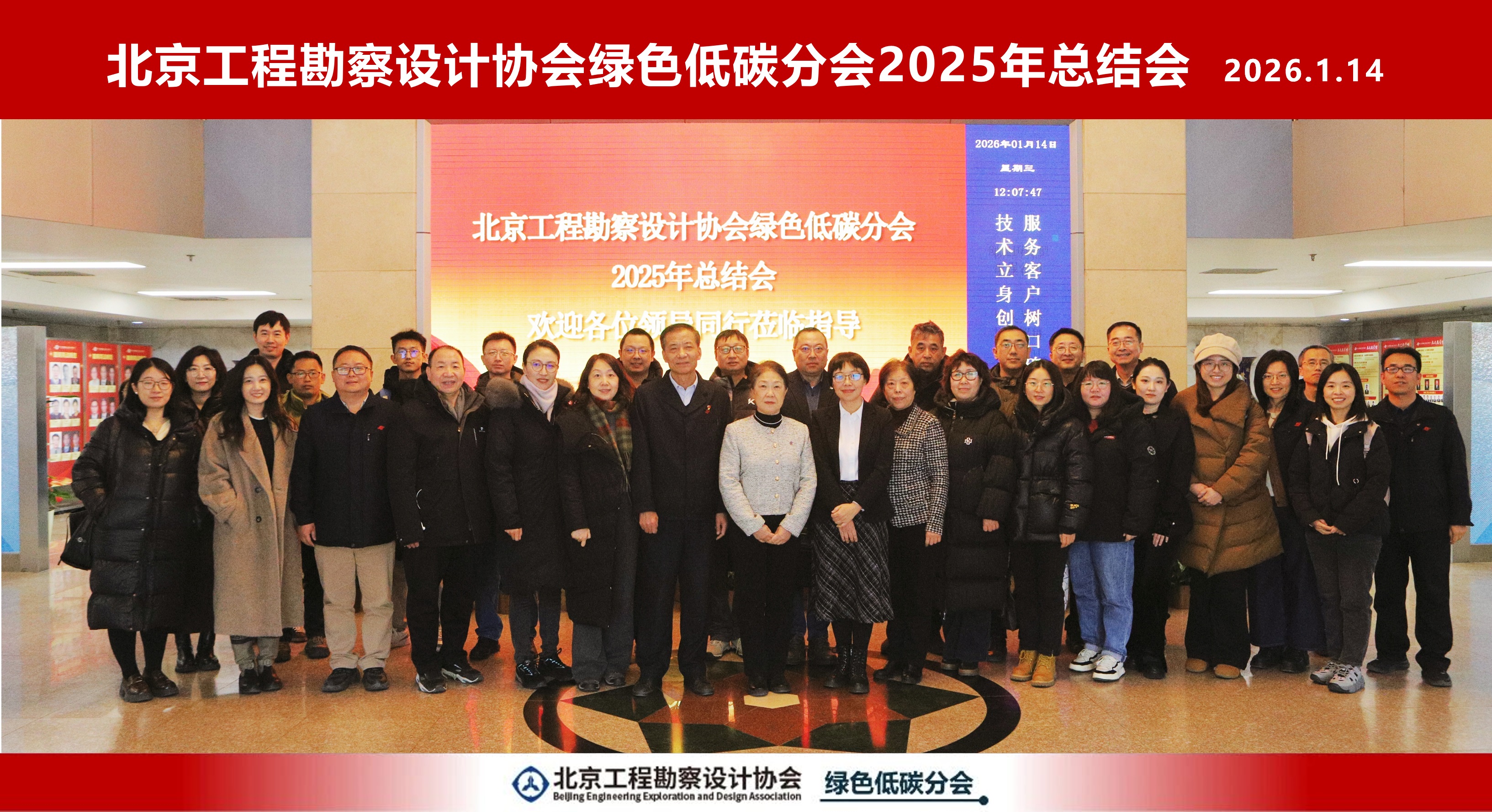 2026年1月14日,北京工程勘察设计协会(以下简称“北勘设协”)绿色低碳分会组织召开2025年工作总结会。北勘设协秘书长胡颐蘅、副秘书长王凤琴、党支部书记兼办公室主任徐丽、行业发展部部长张晓刚、培训中心校长彭惠、协会外事办主任王新莅临指导,会议由绿色低碳分会副主任委员、中国建筑科学研究院有限公司(以下简称“中国建研院”)建筑设计院总建筑师曾宇主持。本次活动承办单位北京首钢国际工程技术有限公司(以下简称“首钢工程公司”)总经理助理、首席合规官王兆村,建筑市政分公司副总经理(主持工作)陈罡、建筑所所长吴会信出席会议,分会成员单位代表共计30余人参加了本次会议。