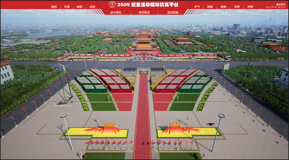 ▶ 定制开发“数建时空”三维模拟仿真平台,服务保障中国人民抗日战争暨世界反法西斯战争胜利80周年纪念活动