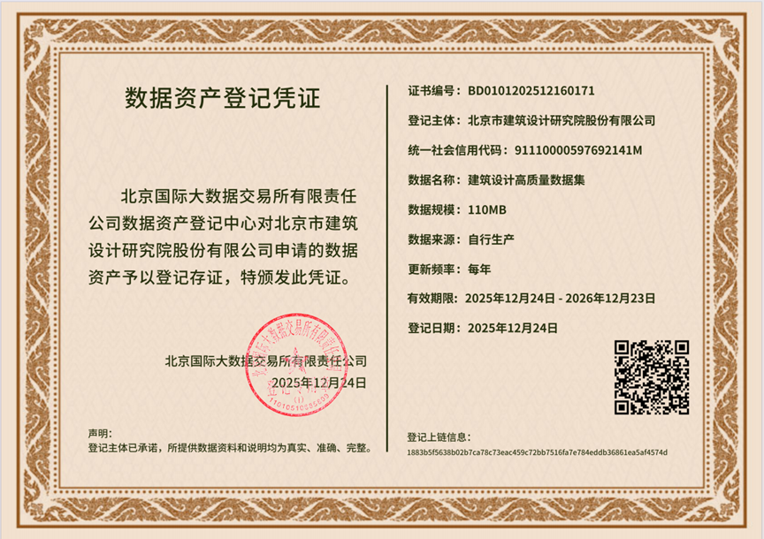 ▶ “建筑设计高质量数据集”获得2025年数据资产登记证书