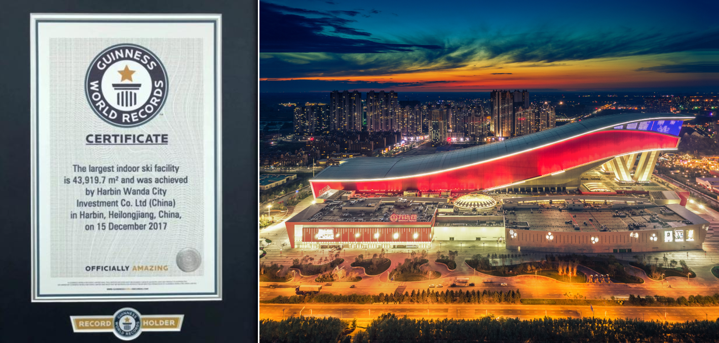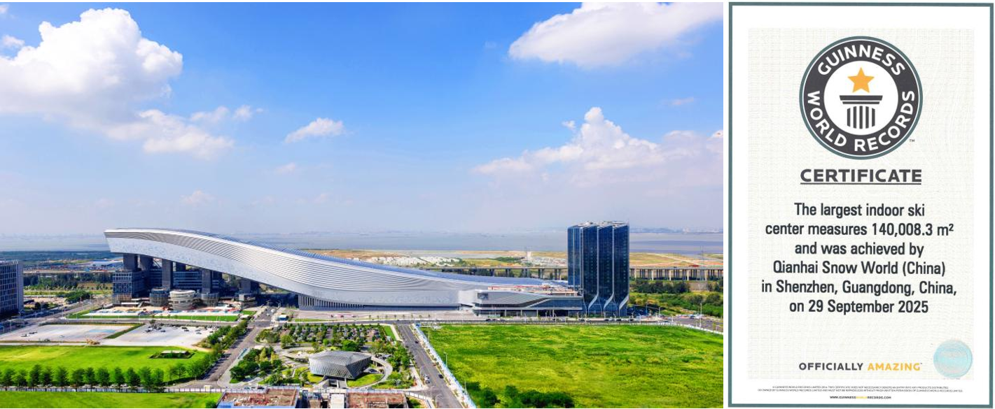 这些设计作品不断地刷新着世界记录。哈尔滨融创茂于2018年获得最大室内滑雪设施吉尼斯世界纪录,规模、雪场长度、落差、坡度均为当时的世界第一。2025年9月底开业的深圳前海冰雪世界,产品全面升级,且可举办国际滑雪赛事,荣获最大室内滑雪中心吉尼斯世界纪录。