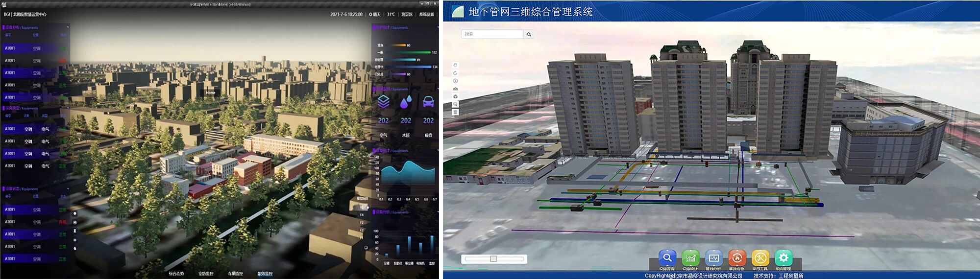 1.软件平台:自主研发“i北勘”系列小程序、三维GIS基础应用平台、地下病害管理系统、智慧能源管理云平台等9个软件平台,为城市更新项目提供数字化管理与智慧运维支撑;