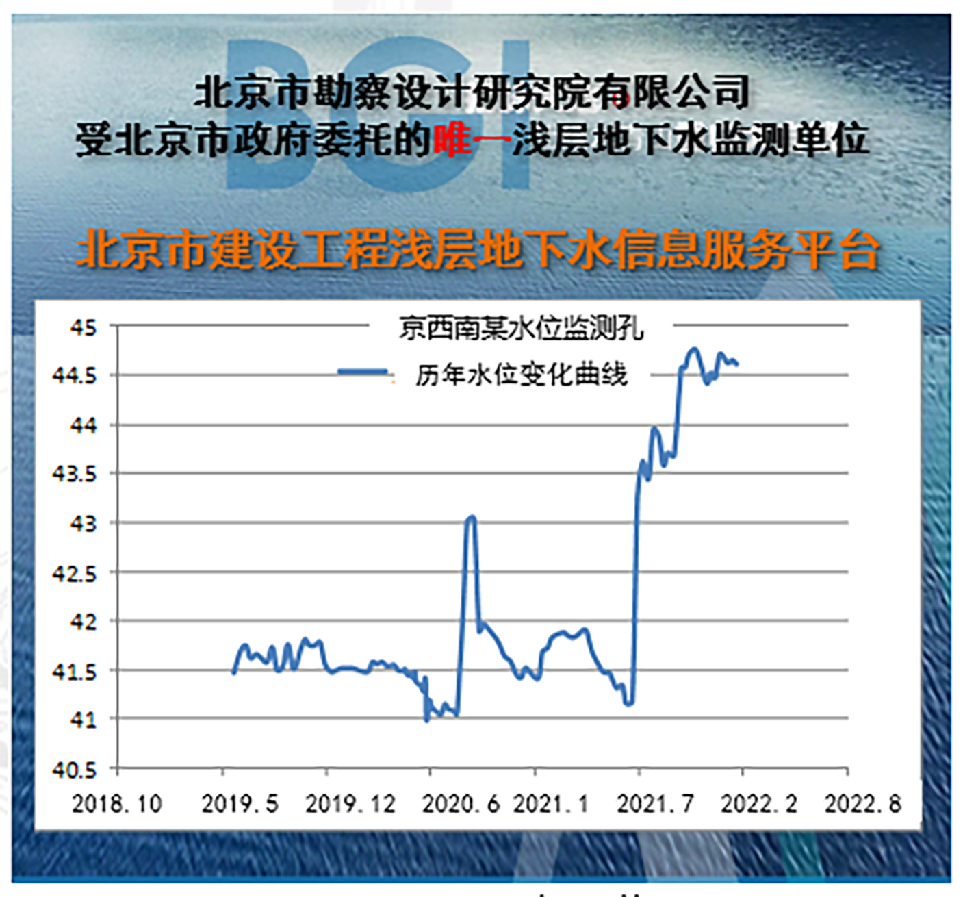 作为北京市政府委托的唯一浅层地下水监测单位,北勘院自1955年起建设北京市浅层地下水监测网,积累了长达70年的连续监测数据,对北京地下水位变化规律与工程影响有着最深刻的理解。