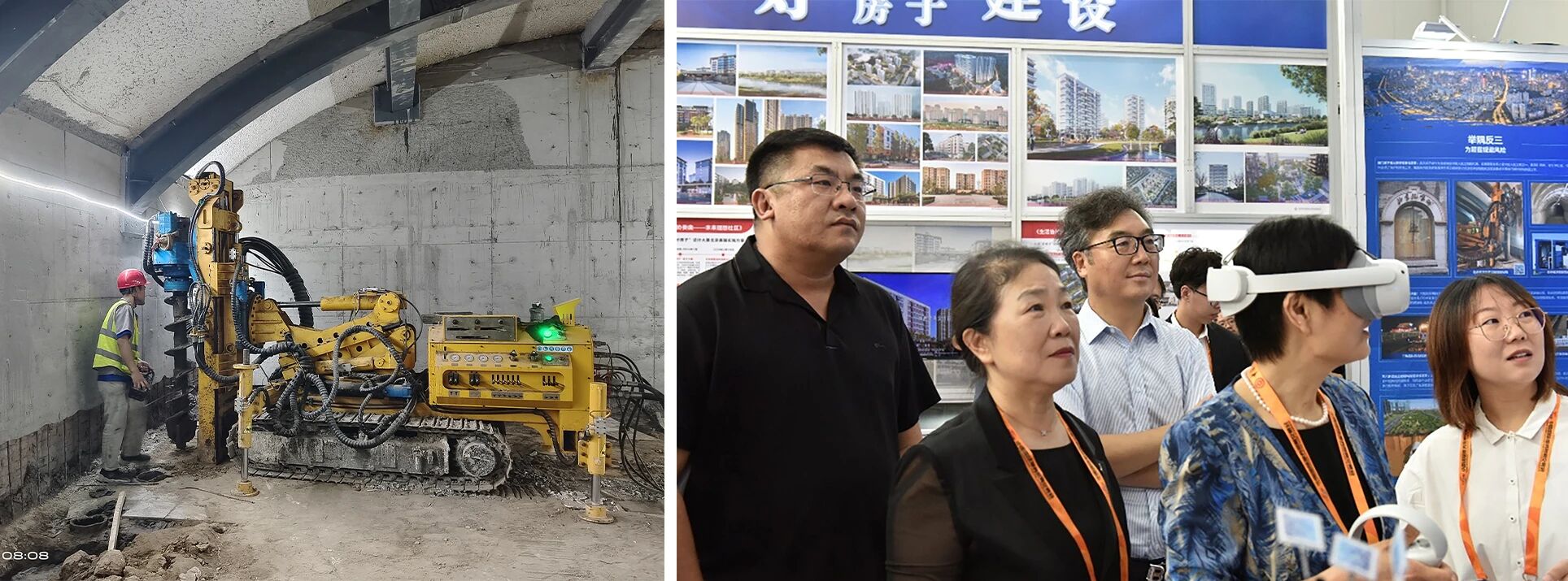 在前门地下城人防博物文化项目中,这一技术实现突破性应用。该项目是首都早期人防工程遗产的保护性更新项目,核心施工区域作业高度仅3.0米、宽度仅2.5米,同时面临地面荷载受限、地层条件复杂、不得破坏原有结构等多重严苛要求,常规设备完全无法开展作业。北勘院自主研发的第二代低净空钻机,采用分体式设计、可升降桅杆、多角度作业、远程操控等核心技术,成功在极端狭小空间内完成了20m深度的灌注钢管桩托换施工,圆满完成了人防工程的基础托换与结构加固任务,让这一历史工程遗产得以保护性修缮与活化利用。目前,该系列技术已获得多项专利授权,相关成果亮相中国国际服务贸易交易会,获得行业内外广泛认可。
