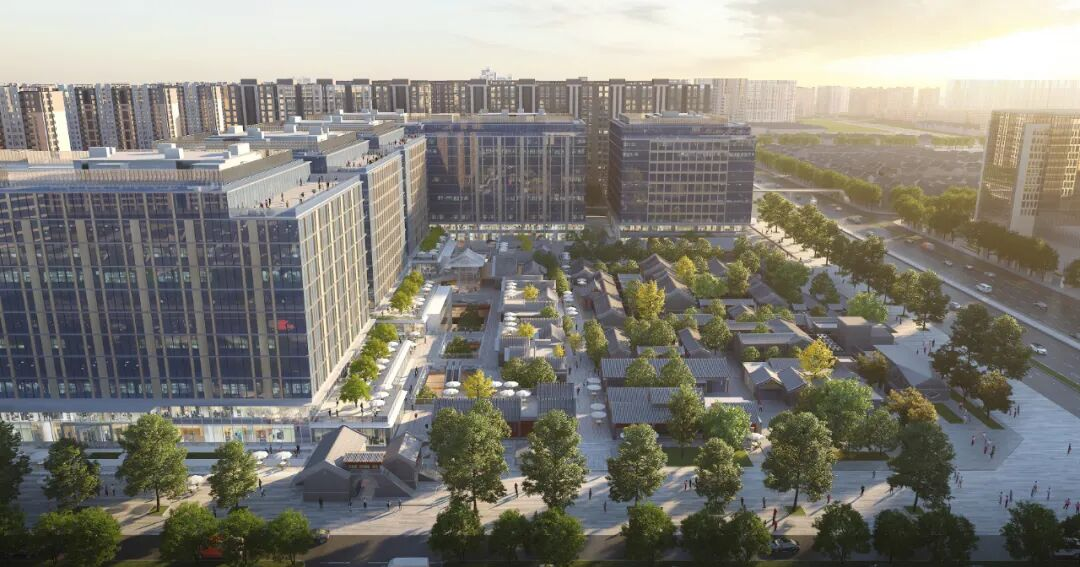 项目遵循“致敬、传承、引领、展望”的设计理念,优化统筹城市设计,保留了米市胡同、北大吉巷、保安寺街三条历史胡同肌理,融三条历史胡同于上下联动的“两纵三横”漫步规划结构,退让城市空间占用地面积的70%,把文物保护区、绿地、城市肌理织补区、二类建控区、下沉街区、首层连廊与地铁、道路、公园等城市公共空间联通融为一体,营造集休闲、商业、办公为一体的无障碍传统街坊开放城市空间。